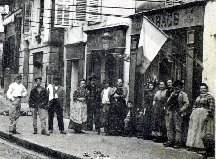 des buralistes de l'époque. ( Inscriptions sur la devanture: "Vins et liqueurs - Tabacs - Articles de chasse" ) |