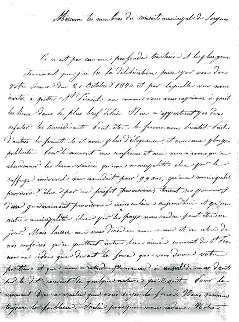 24 Octobre 1870 le Supérieur des Capucins répond à la commission municipale.