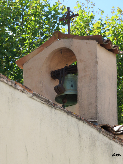 | La chapelle est ornée d'un vitrail de Paul Ducatez qui représente l'ange Gabriel annonçant sa maternité à Marie. | Sur la toiture un campanile surmonté d'une croix abrite une cloche donnée par les soeurs de Sion et provenant de l'établissement marseillais de la rue Paradis. |